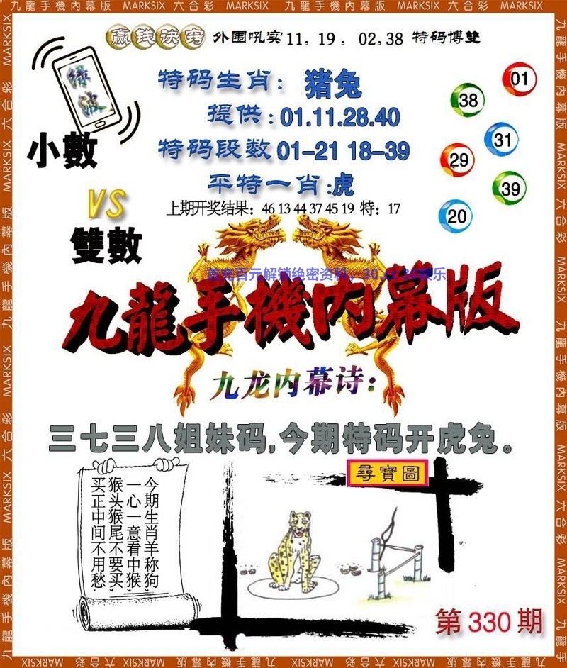| 330期:杀三肖【牛狗马】开:马36错 |